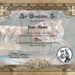 Thank you for helping us implement the Tiger Preservation Initiative. If you donate $25 or more I will send you a personalized commemorative certificate. The certificate is 8 1/2″ x 11″ and ready for framing. Click on the thumbnail at left for an enlargement. Click the button below to make your donation. And again, I thank you for your support.